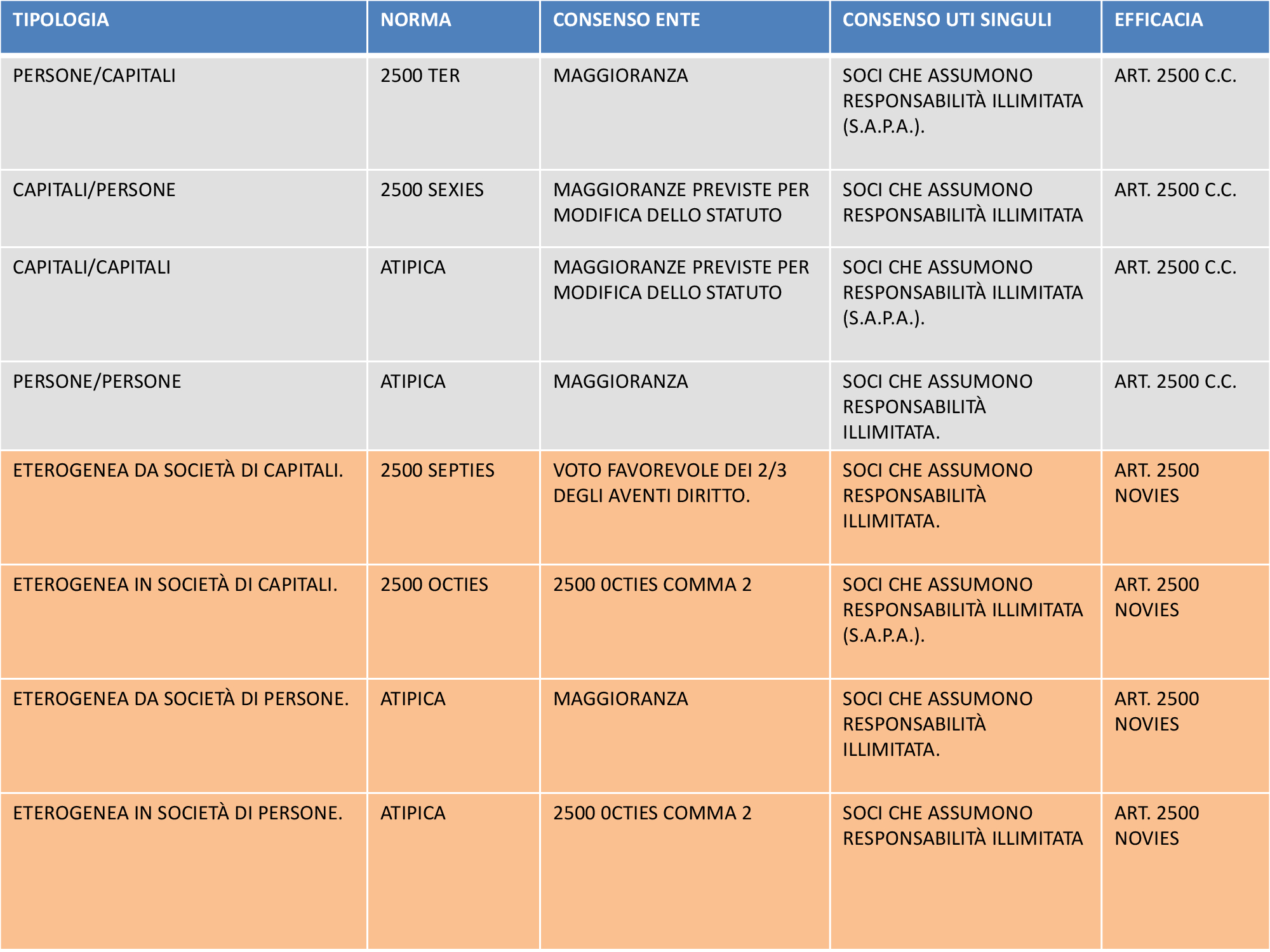 ART. 2500-ter, 2500-quater e 2500-quinquies c.c.: TRASFORMAZIONE DI SOCIETÀ DI PERSONE (c.d. “omogenea progressiva”).